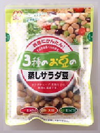 大豆、青えんどう、赤いんげんの3種類を彩り良く配合し蒸し上げました。開封していつものサラダにトッピングとしてお使いください。勿論、カレー・スープ・グラタン・パスタソースなどにもどうぞ。