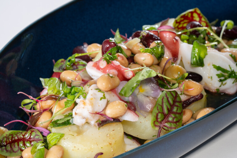 タコとミックスビーンズとじゃがいもの温製サラダ仕立て